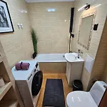 Apartament Dworzec Pkp Appartement is uitgerust met airconditioning, en biedt een balkon en een zitruimte met een bank. Dit appartement heeft 1 slaapkamer. 1 badkamer heeft een apart toilet en een badkuip, plus een droger en handdoeken.
